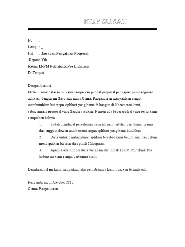 Doc contoh surat balasan penawaran untuk pembelian barang 1 docx. 10 contoh surat permohonan dana sponsor kerjasama dll. Contoh surat balasan pkl ini kami buat untuk anda semua supaya anda bisa langsung menggunakan untuk bisa. Surat permohonan untuk mahasiswa yang ingin melaksanakan kerja praktek dan ini merupakan contoh balasan kesediaan tempat untuk kegiatan kp mahasiswa. Contoh surat balasan praktek kerja lapangan atau magang pdf pdf.