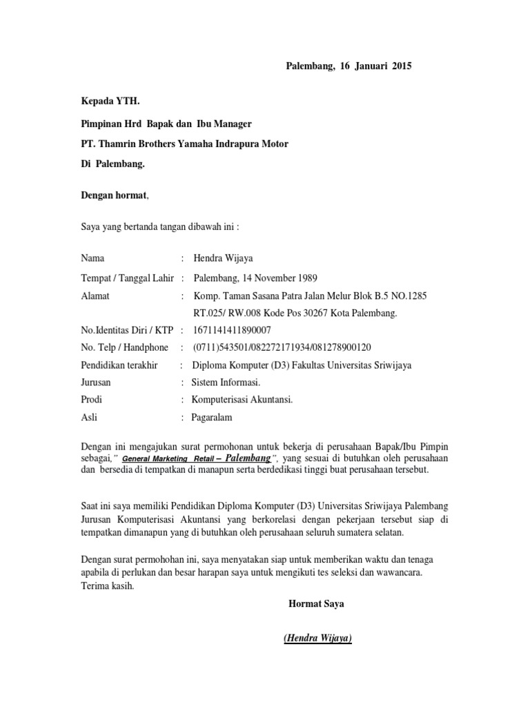 Oleh karena itu tidak heran jika saat ini banyak pencari pekerjaan menargetkan bekerja di perusahaan atau pt contoh surat lamaran kerja pt. yamaha tulis tangan. Dilengkapi file doc dan tips agar diterima!